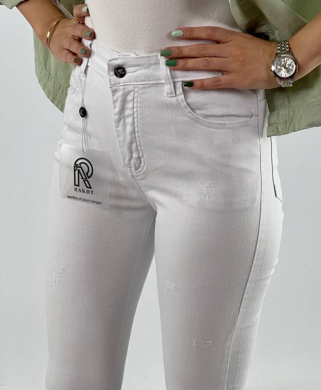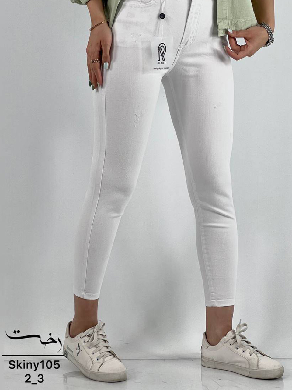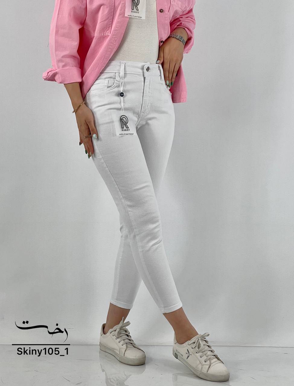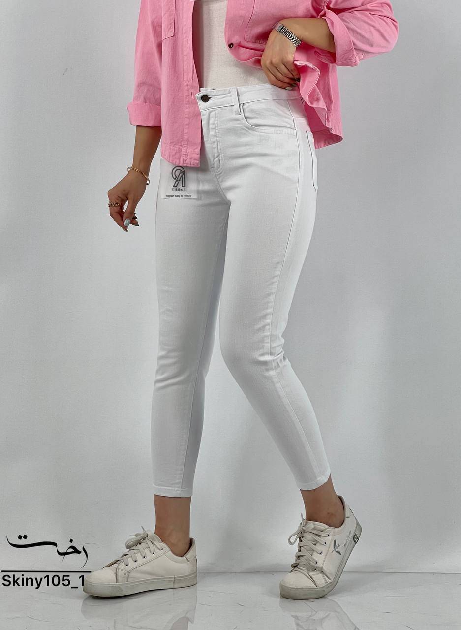 شلوار اسکینی جین سفید ساده
