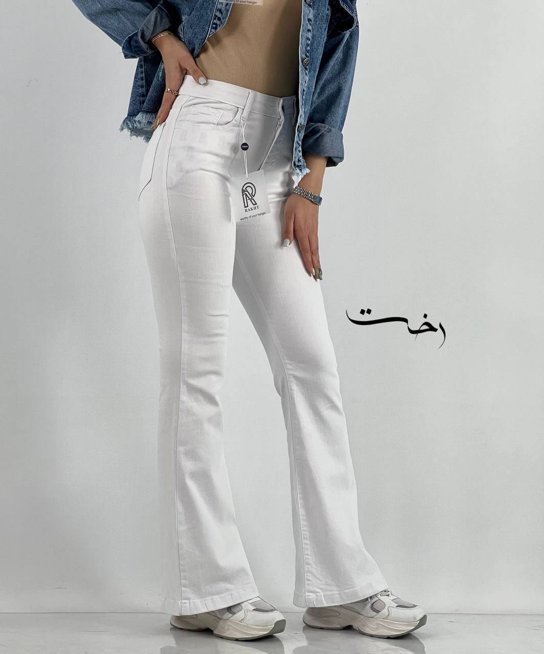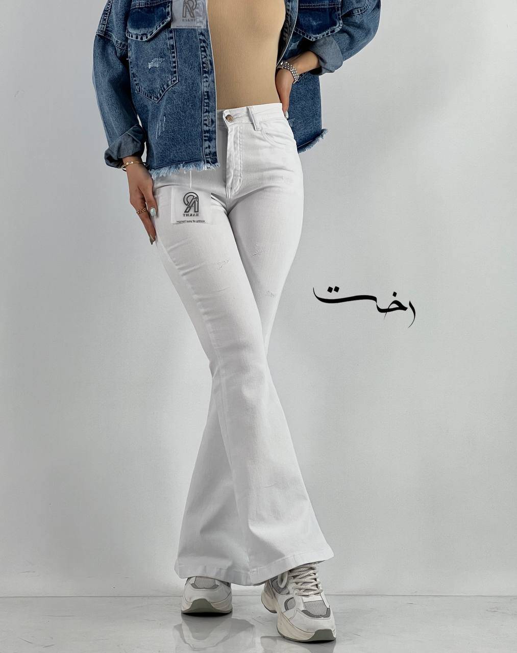 شلوار بوتکات سفید دمپا دوخت