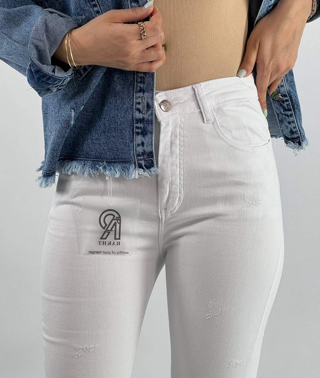 شلوار اسکینی جین سفید ساده