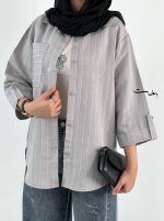 شومیز راه راه یقه دار