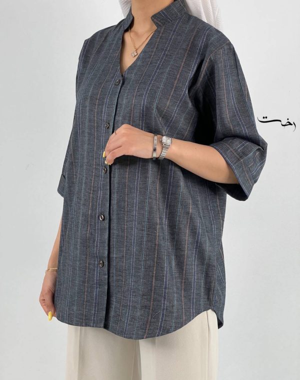 شومیز کراپ راه راه مچ دکمه